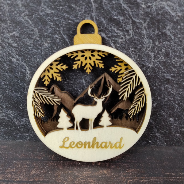 Verleihen Sie Ihrem Weihnachtsbaum oder Ihrer Festtagsdekoration eine ganz persönliche und rustikale Note mit unserem personalisierten 3D-Weihnachtsanhänger im eleganten Kugel-Design.